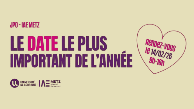 Le 14 février, découvrez l’école universitaire de management de la Moselle et du Nord Lorrain, l’institut qui forme les cadres et managers de demain, une école de commerce au tarif de l’université publique :