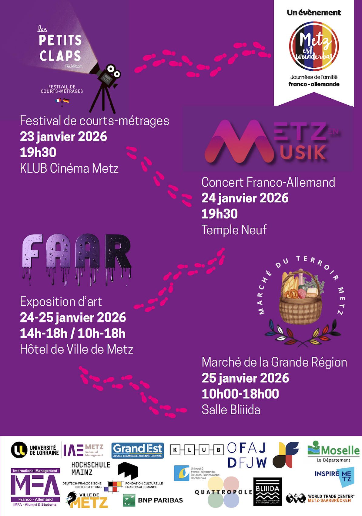 Les Journées de l’Amitié Franco-Allemande 2026 (JAFA 2026), se tiendront du 23 au 25 janvier 2026 à Metz, en partenariat avec la Ville de Metz.
